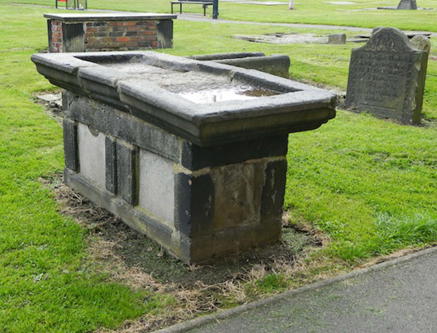 La tombe est toujours visible dans le cimetière St-John, reconnaissable car c’est le seul qui n’est pas dans le bon sens.