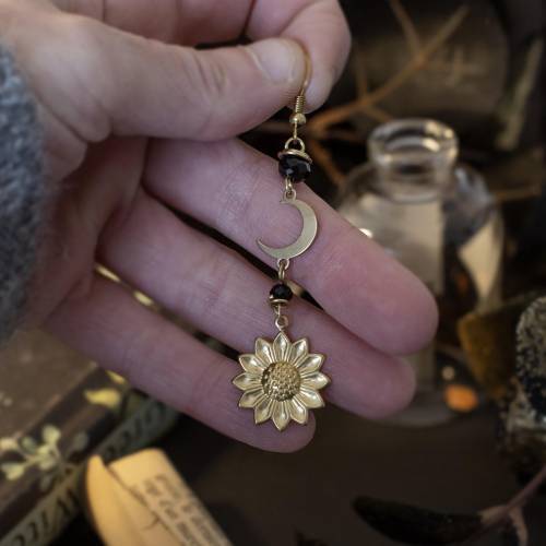 Ces boucles d’oreilles en laiton capturent l’essence d’un printemps gothique, où la nature éclot sous une lueur envoûtante. Suspendues à un croissant de lune, les marguerites symbolisent à la fois l’innocence et l’étrange beauté des nuits étoilées. Une alliance parfaite entre lumière et ombre, entre douceur florale et magie nocturne.
