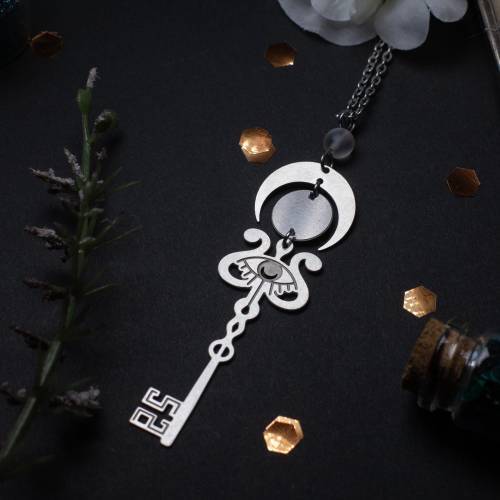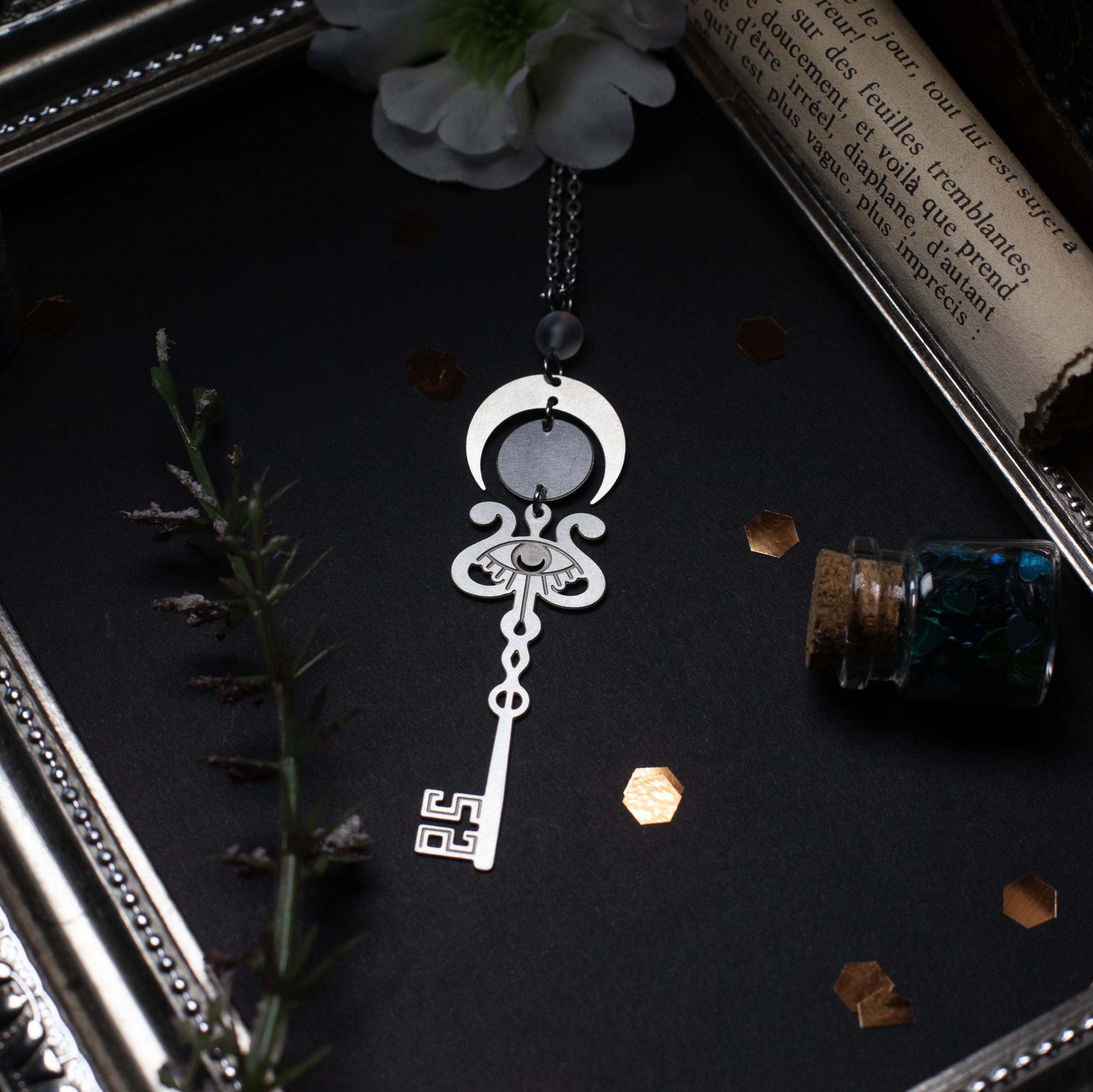 un collier mystérieux inspiré du conte macabre de Barbe Bleue. Symbole d’interdits et de secrets bien gardés, cette clé en acier inoxydable incarne à la fois l’élégance gothique et le frisson de la découverte.