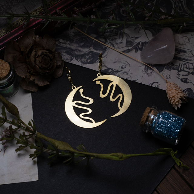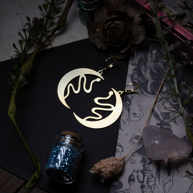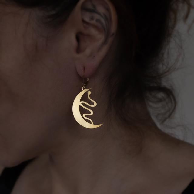 moon snake: la puissance du serpent dans ses boucles tout en laiton. Tu rêves de muter pendant la pleine lune, ces boucles sont pour toi