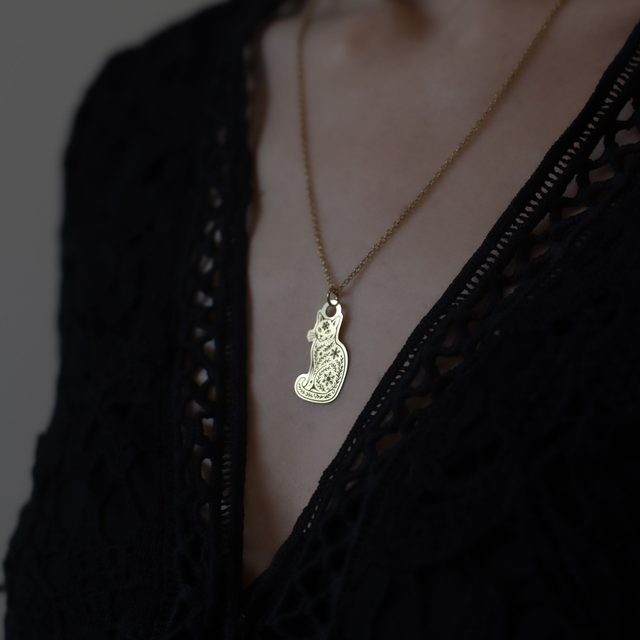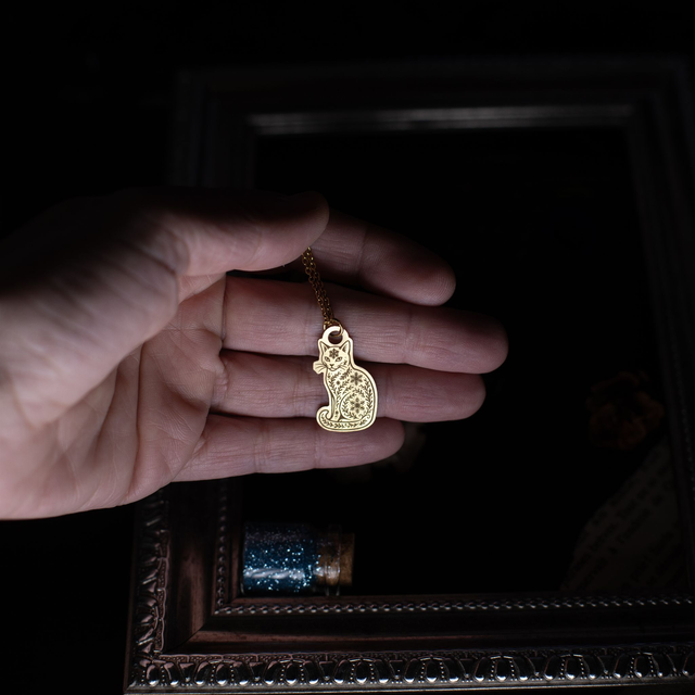 Afin de conserver au mieux ton bijou , évite le contact avec l'eau et la chaleur (le chats n'aiment pas se baigner)